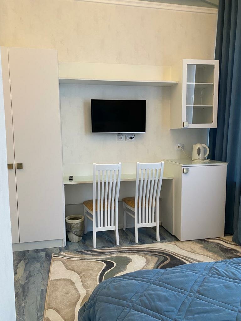 Однокомнатный, 2-х спальная кровать, , тумбы, два барных стула, обеден. зона на широком подоконнике-столешнице с видом на акваторию залив, туалетный столик со стулом на колёсах, шкаф, LED TV, сплит, холодильник, посуда, с/у с душ.кабиной,S-28m, h-3,5