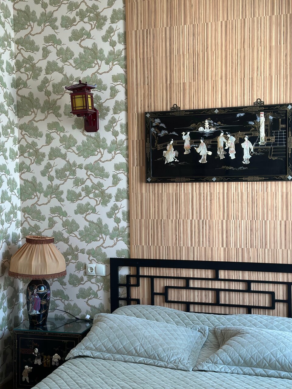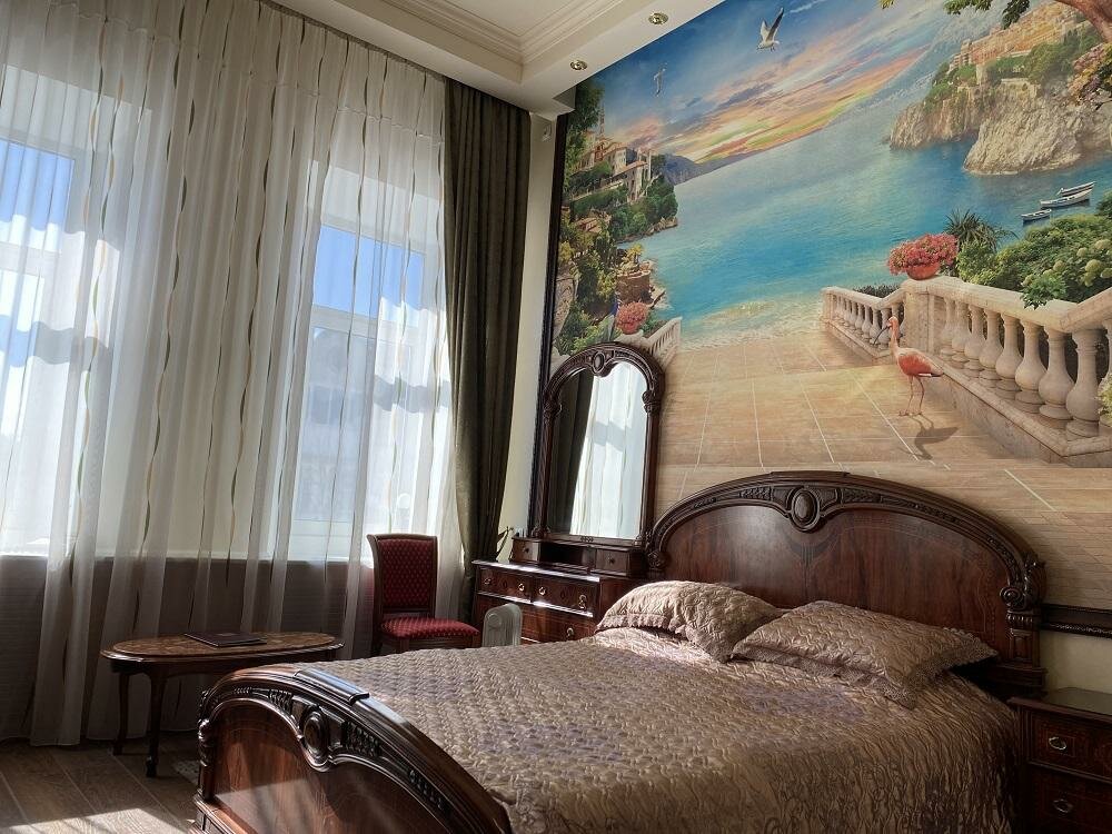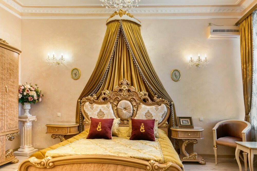 Двухкомнатный, 2хсп. кровать с балдахином, диван, кресла, столик, шкаф, камин, горка, туалетный столик, консоль, картины, Led TV,сплит, посуда, кофе-машина, холодильник, телефон, с/у с ванной и тропический душем, биде, косметич. принадл.S-37кв. м.