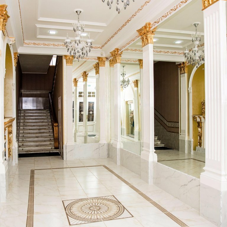 Помпезная гостиница с претензией на дореволюционный особняк с колоннами, позолотой и и.д. В то же время географическое положение очень удачное, замечательный улыбчивый персонал, приличный завтрак.