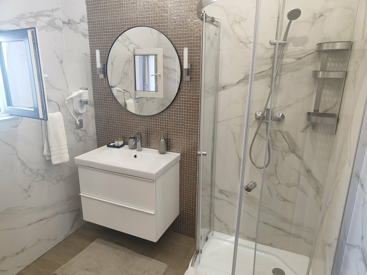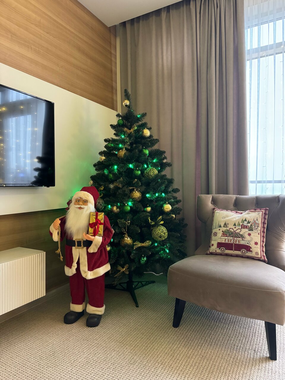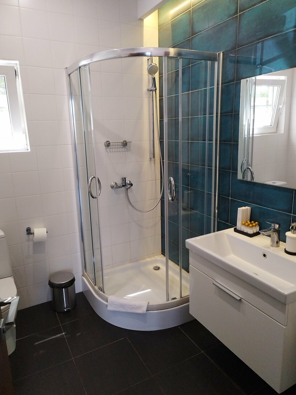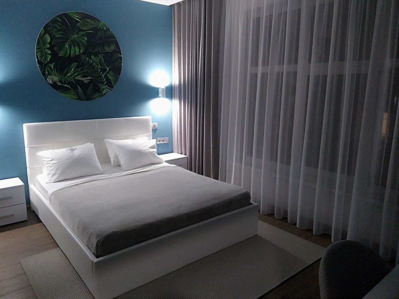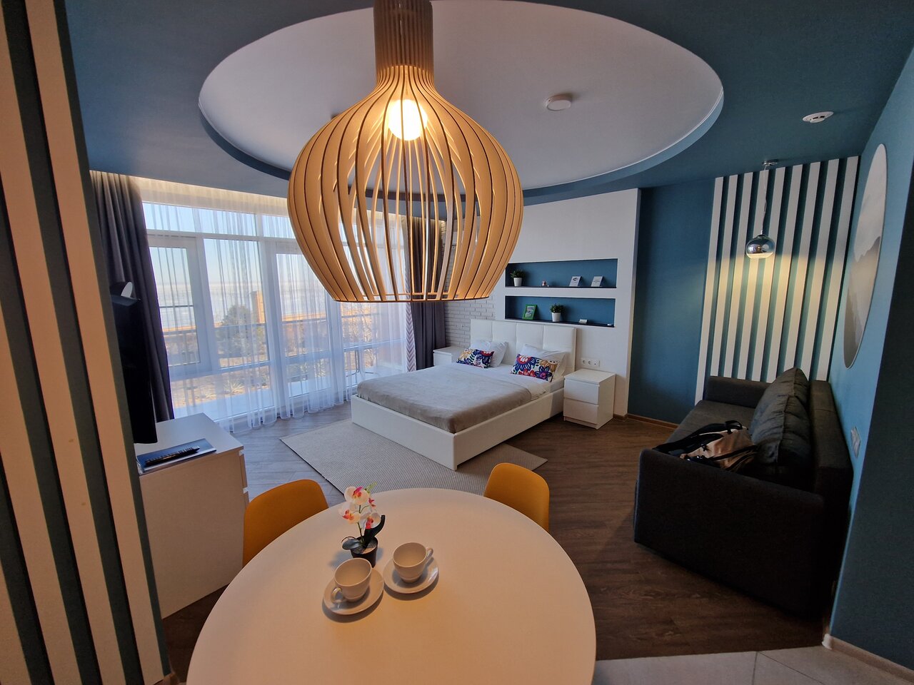 Отличное место для отдыха! Останавливалась в октябре на 4 ночи в апартаментах, осталась очень довольна. Во- первых — номер просторный (брала с видом на море), большое панорамное окно с выходом на балкон. Очень понравился стильный дизайн номера в спокойных тонах. Во-вторых, в номере чистота: всё блестит, всё натёртое, то же самое и в санузле (тоже кстати, большой). В- третьих, наполнение номера. Есть всё необходимое, особенно порадовал большой напольный кулер (обычно такие на этажах ставят). И 4 подушки тоже понравились))). Утюг, гладильная доска и сушилка в номере тоже есть. Ну и вообще создаётся приятное впечатление заботы, хочется вернуться. Звукоизоляция средняя, соседей слышно. Отель на краю города, я такой и искала, территория ухоженная, есть 2 бассейна. Один, подогреваемый, работал. В качестве места для пляжного отдыха я бы его не рассматривала. Море рядом, но пляжа нет. Но если вы любите тюлений отдых у бассейна — вариант годный.