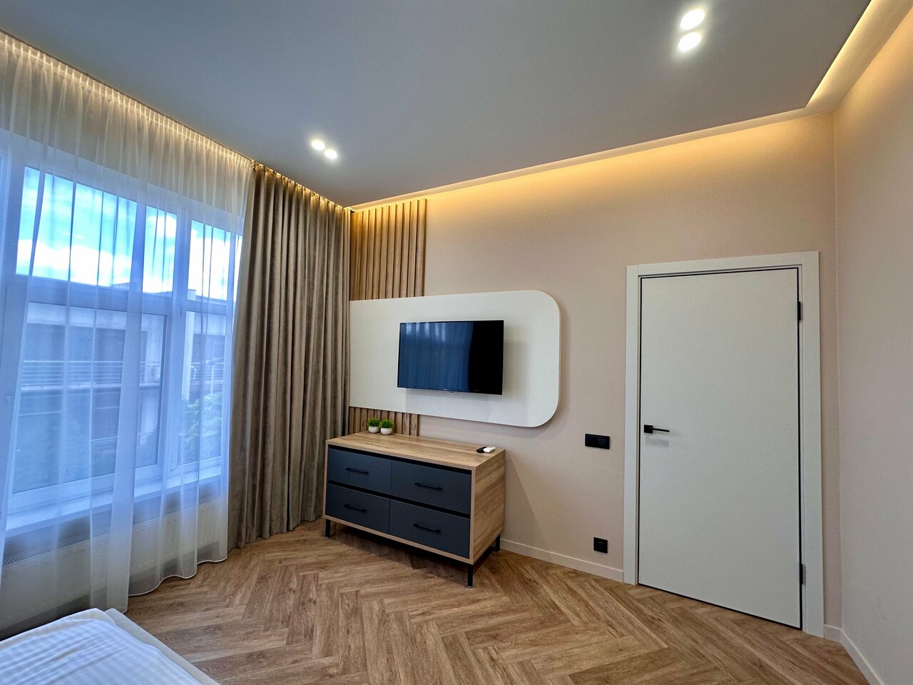 Прекрасное место для комфортного отдыха. Первая линия, балкон выходит на море. Современный интерьер, новая мебель, великолепное постельное белье, полотенца кристально белые. Идеальная чистота, вежливый персонал. Можно путешествовать на легке: в апартаментах есть все необходимое ( шампунь, кондиционер, мыло, зубной набор, шапочка для душа, халаты, тапочки), кухня с современной бытовой техникой, чай,кофе, сливки. На территории 2 бассейна: бесплатный и платный. Охраняемая автопарковка платная. В 500 метрах находится аквапарк. Ещё одна важная особенность- апартаментов много(хозяева разные), будьте внимательны, выбирая на сайте. Рекомендую.