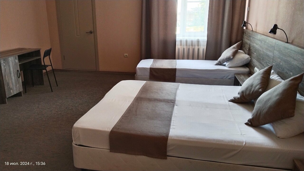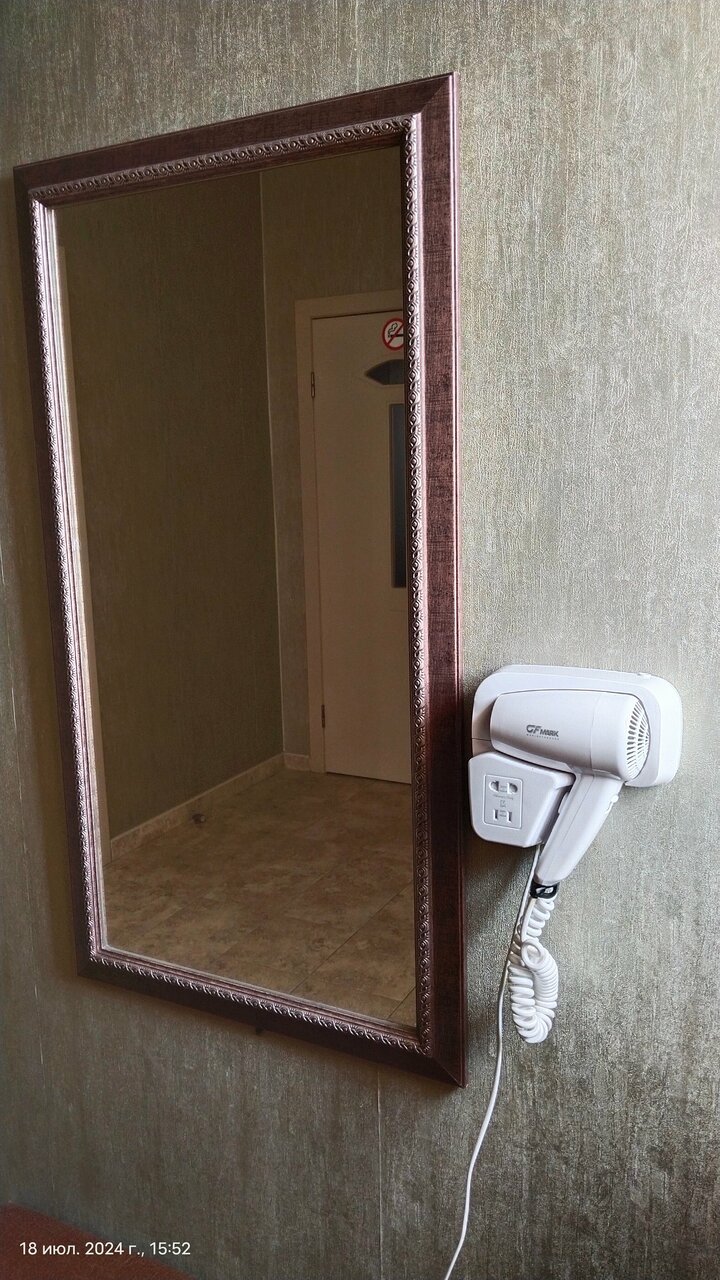 Не отель а придорожная гостиница. Максимум 1 заезда. Номера не очень. Замызганый . Слышимость хорошая. С улицы шум машин и железной дороги. Розетка одна и та была занята телевизором и холодильником. Что бы зарядить телефон нужно всё отключить. В ванной пахнет канализацией. Вода с запахом канализации. Полотенца серые, как будто застиранные. Кровать не удобная, как будто пружины торчат. Заявленного фена нет. Холодильник маленький и стоит на полу так низко, что приходиться вставать на колени, что что то достать. Обычно такие холодильники ставят на подставку. При заселении только наличка или перевод на непонятный телефон. Терминала нет. Хорошая только стоянка для машины.