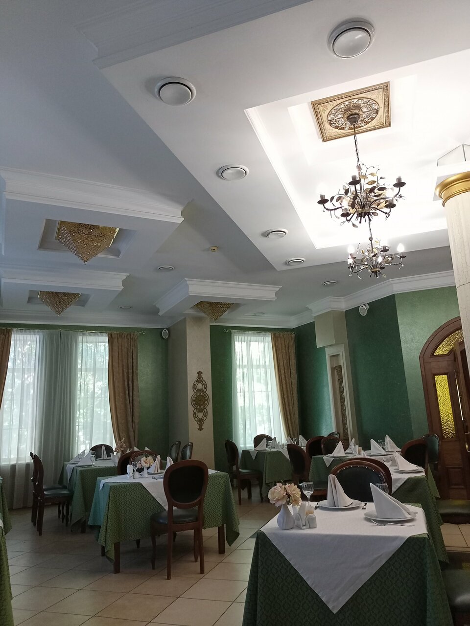 В ресторане отмечали юбилей,летом,кондиционер ,вкусный стол,меню обговарилось ,какие то свои продукты,напитки,все вопросы решались быстро и в нашу пользу,официанты профи, рекомендую.