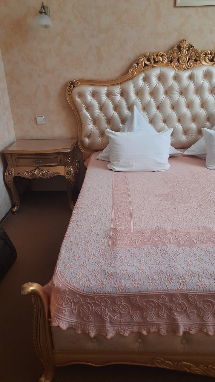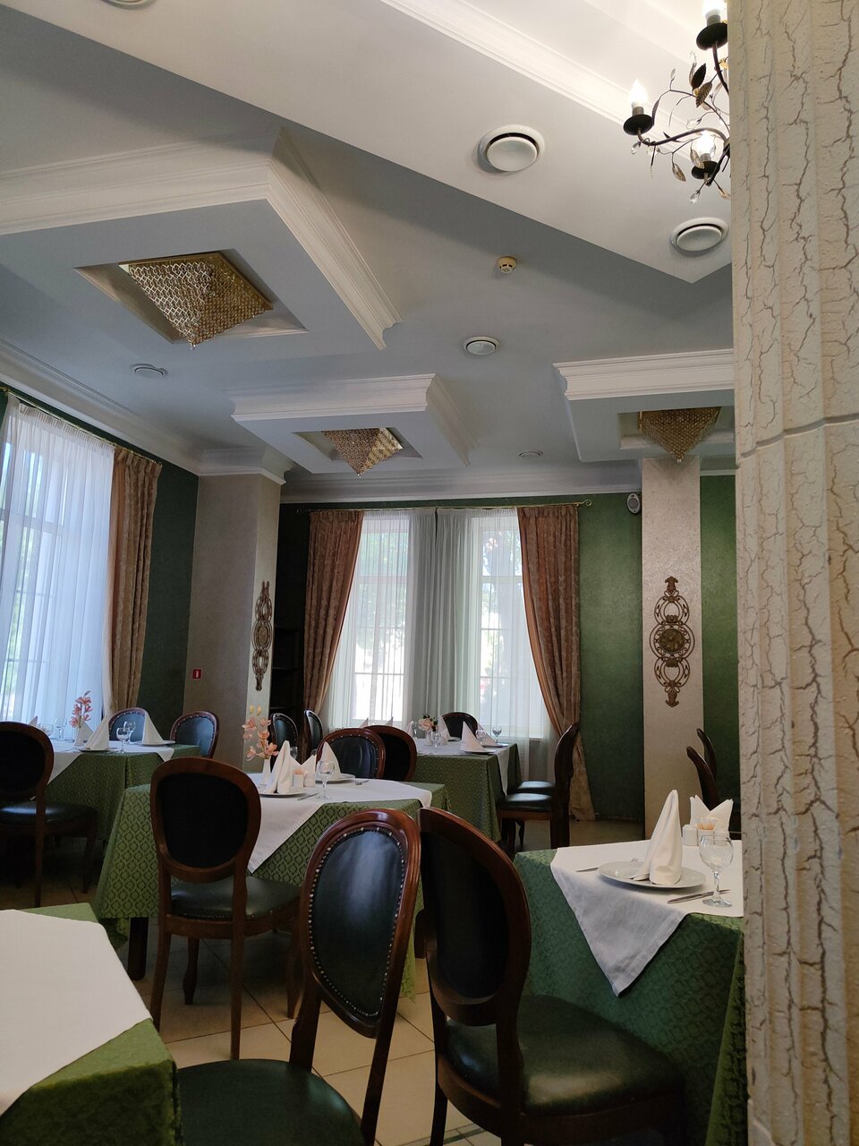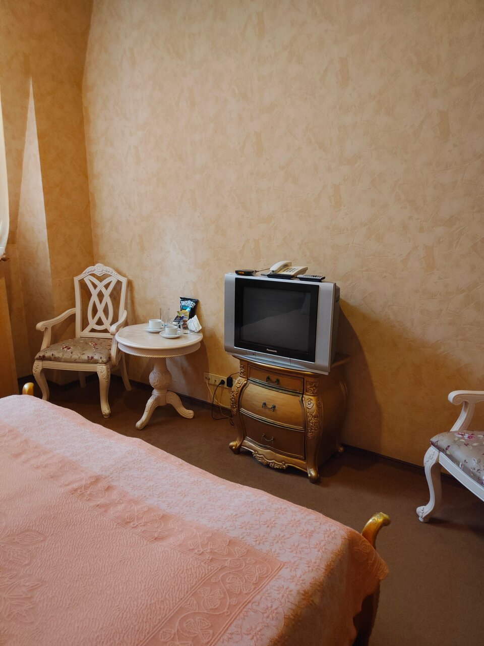 Вполне приятная гостиница. Находится в самом центре. В номере чисто. Есть принадлежности в ванной, полотенца, халаты. Чашки, чайник, холодильник с мини-баром. Завтрак не шедевральный (омлет, блины, сыр, ветчина), но для гостиничного завтрака вполне. Персонал приветливый. Есть парковка. Из минусов- в номере два окна, москитная сетка только на одном. А, с учетом зеленых комаров в Таганроге, это можно причислить к небольшому минусу. В целом, вернулась бы еще