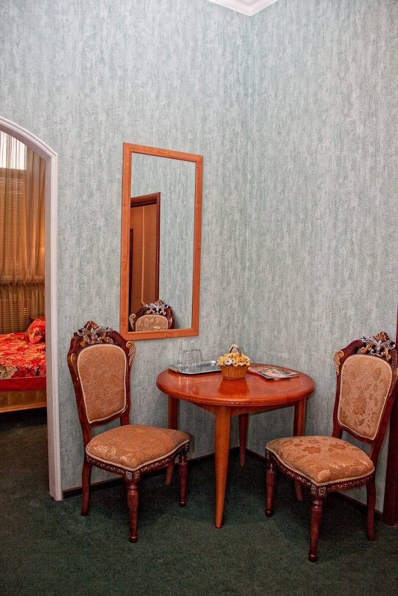 Уютно и тихо. Не большая гостиница на тихой улице. На против гимназия и небольшой сквер. В гостинице 7 небольших и уютных номеров. Завтрак часто включен. На первом этаже небольшой ресторан. На втором — номера. Дороговато, но это почти центр города. Не далеко есть не плохая столовая.