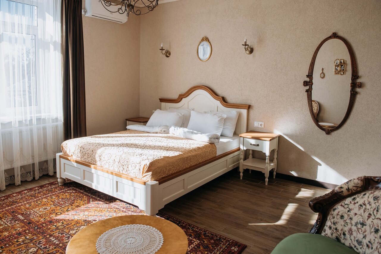 Мне понравился отель и номер за те деньги , что мы заплатили, есть свой шарм : бассейн , сауна , маленький двор, завтраки и ужин за дополнительную плату. До центра Таганрога 30 минут ходьбы не спеша. Корпус в котором я жил , оформлен в литературном стиле в честь памяти великого А.П.Чехова , можно почитать его книги. Почему оценка 4 , а не 5 потому что оцениваю , как автомобиль средний класс. За доступные деньги приличный комфорт. Рекомендую.