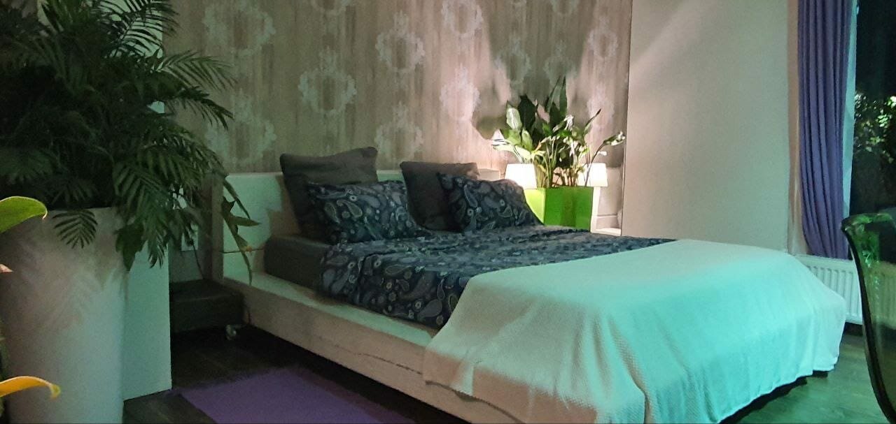 Семейный дом с зимним садом 78 кв: две комнаты, все комнаты выполнены в эко стиле (деревянные полы, декор из натуральных материалов (камня и древесины) спальня :кровать, тв. Зал: большой раскладной диван, тв. Кухня: тв, микроволновка...
