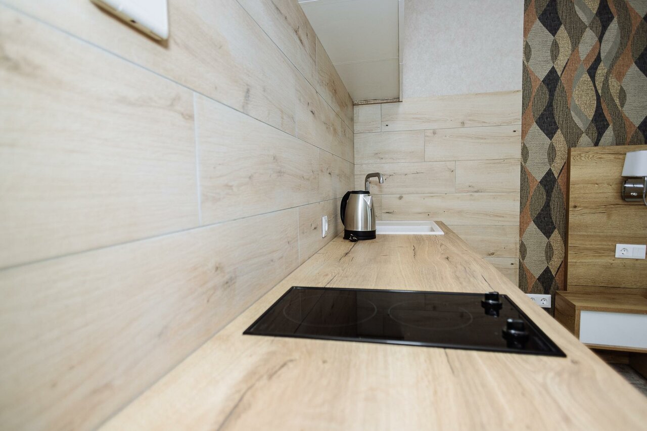 - Наличие минибара, электрочайника, набора посуды.