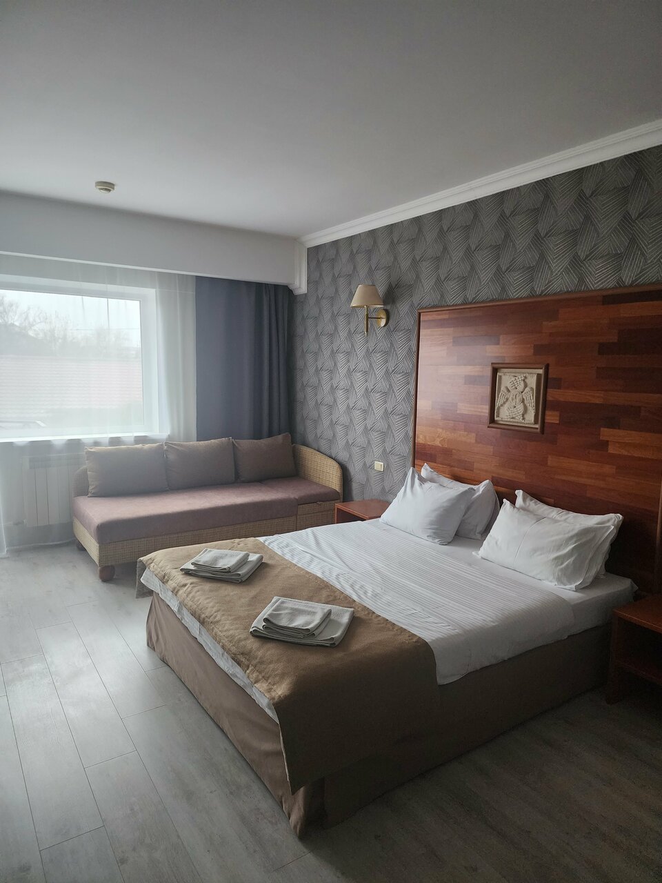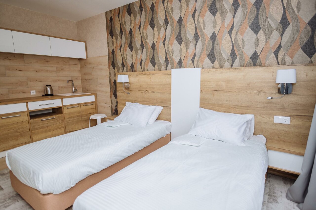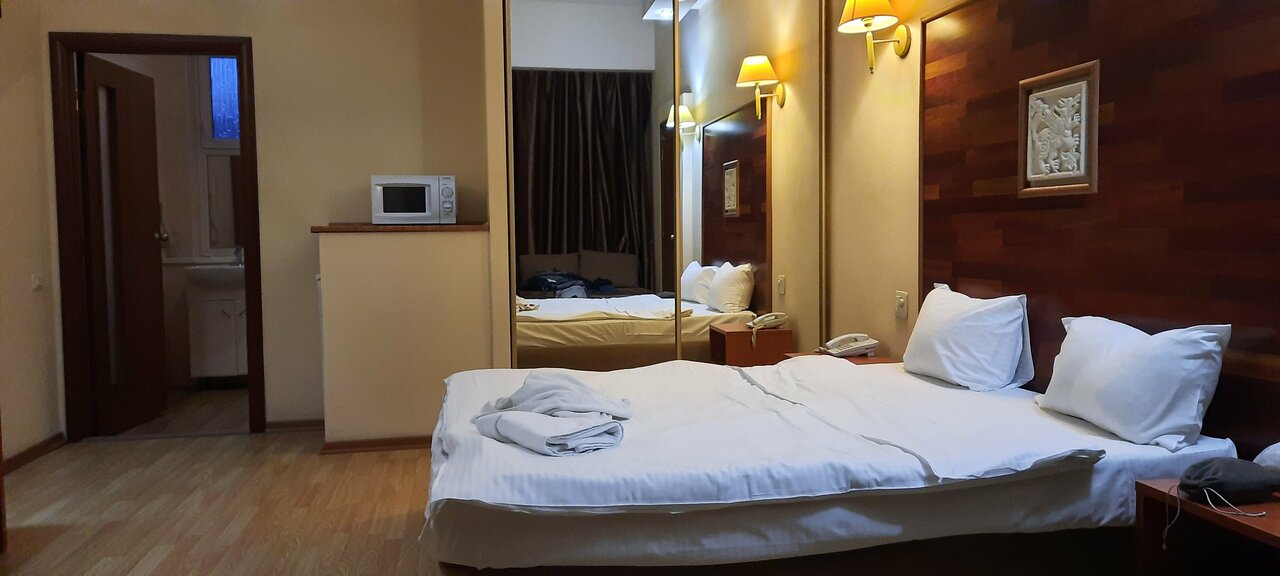 Не очень удобное место, в плане доступности до Центра и магазинов. В отеле несколько корпусов, жил в старом. Номер большой, но всё изношено. Матрац придавлен, лейка души бежит, вообщем всё надо менять…