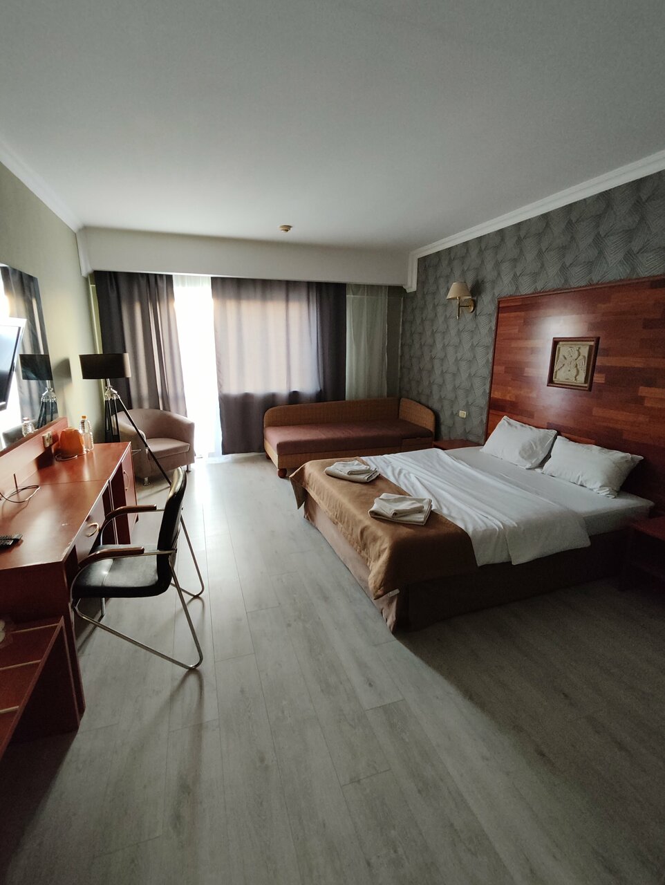Авансом прибавила звезду за то, что в жутко провинциальном городе, есть место с хорошими просторными номерами и красивой территорией. Персонал часто грубый, неулыбчивый. Жуткие серые полотенца. Еду в ресторане надо заказывать за сутки. Для нас это было проблемой. Но учитывая, состояние моря и наличие бассейнов, можно отдыхать с детьми