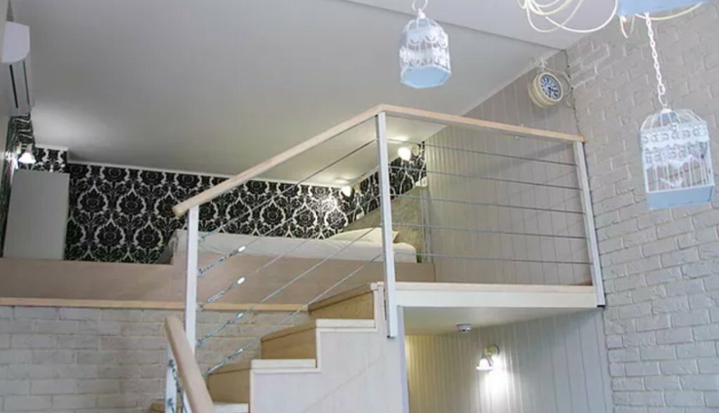 Яркий номер, интерьер которого выполнен в позитивной стилистике убедит вас, что «Life is Beautiful». Идеально для деловой поездки, романтической встречи и первой брачной ночиВ этом лофте кровать размера «king-size», а ванной комнате вы найдете всё