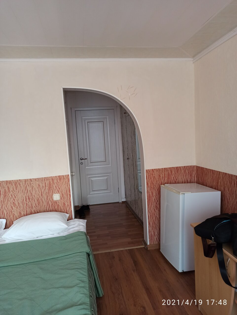 Номер за 1500 в других гостиницах намного лучше. Кровать очень скрипит, шкаф из старого советского шифонера. В других отелях за такую цену (в наличии чайник, фен). Несмотря на запрет в холле всё время присутствует противный запах куриения. Никто за этим не сидит. Из хорошего: парковка, сплит система, холодильник в номере, чистое бельё.