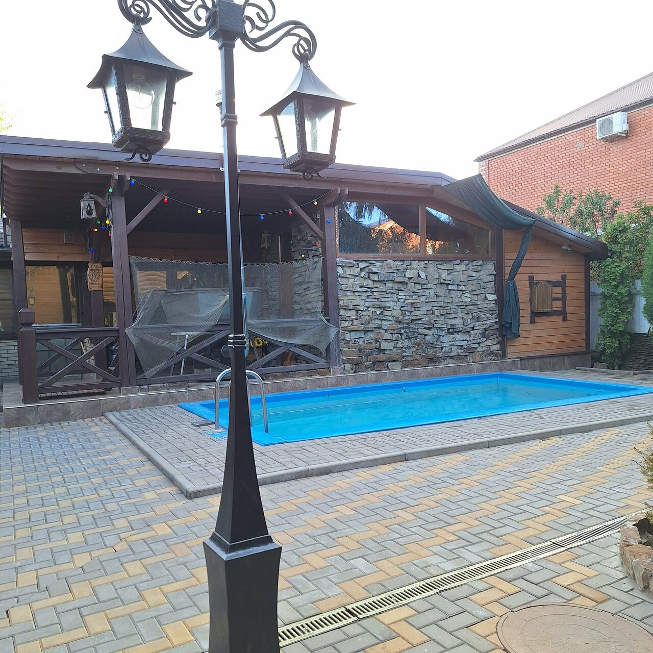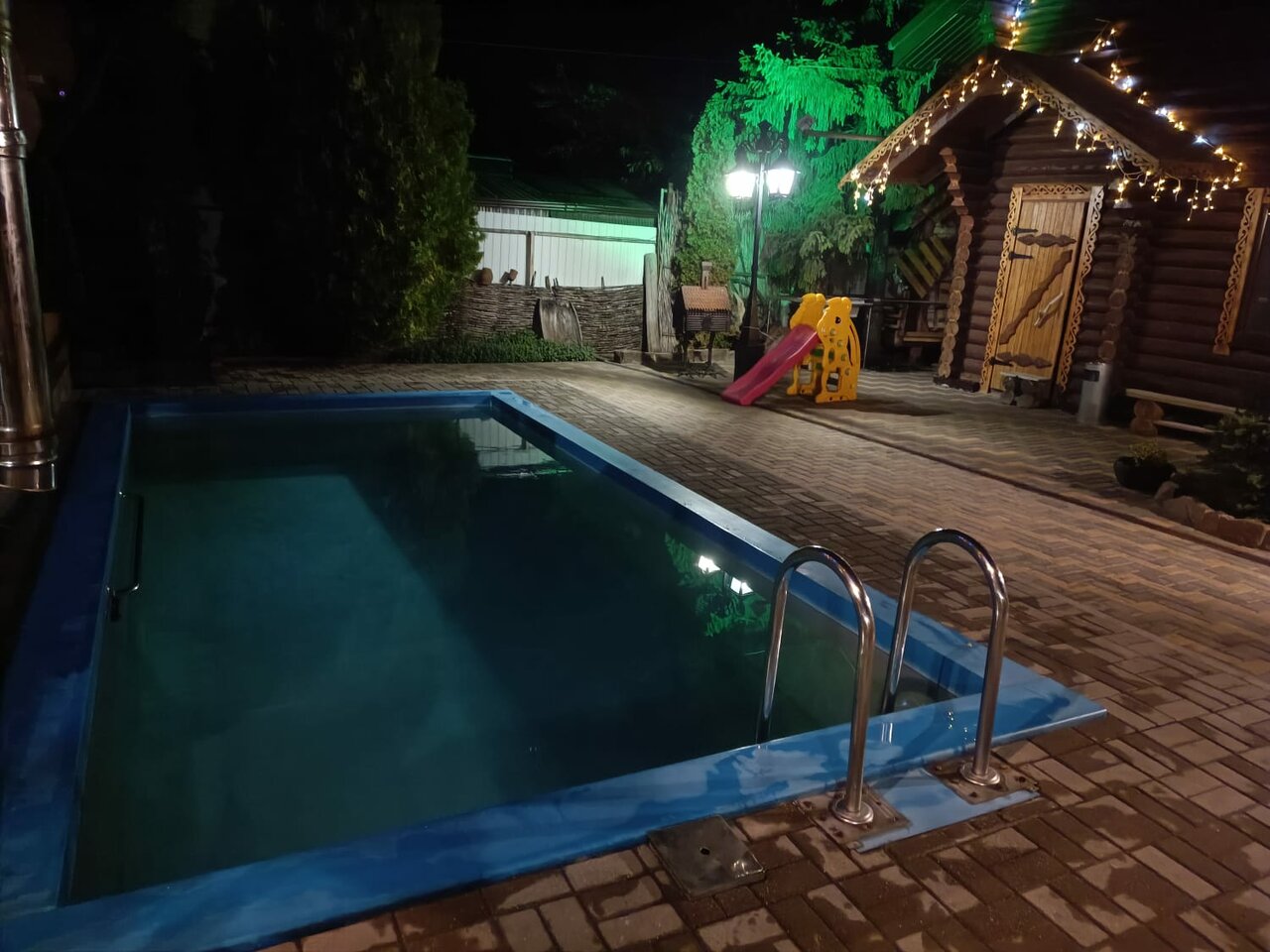 Большая вместительная беседка отмечали День рождения вместилось 30 человек и очень удобно что в любую погоду внутри есть мангал. бассейном дети пользовались, тёплый и чистый.