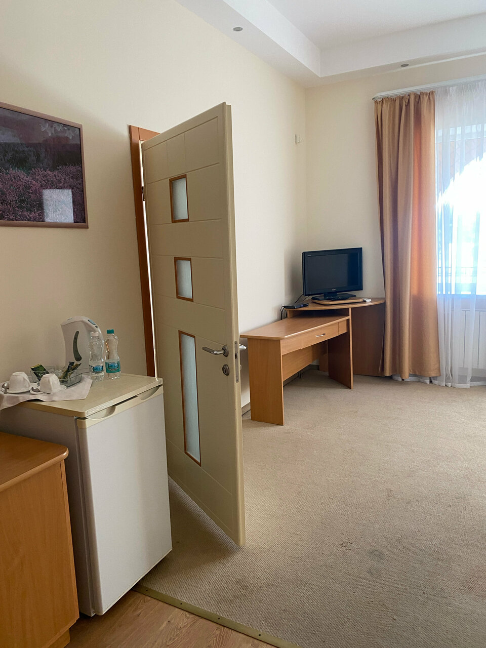 Откуда все эти хвалебные отзывы? Номера максимально убитые. В люксе мебель какая-то дешевая офисная. Грохочущий холодильник, неработающие сплит-системы. На 2 комнаты 1 кондиционер. Диван весь в пятнах. На весь номер всего один стул. На балконе нет ничего, кроме замызганной сушилки. Бассейн маленький, шезлонги заменить нужно было лет 5 назад. Персонала нет вообще, только одна девушка на ресепшене. Полотенца изрядно потрепанные. Пляж- и не пляж вовсе. Кусочек грязного песчаного берега, да и закрыт к тому же. Территория большая, но бестолковая. Местные играют в футбол, отдыхающим делать нечего. Вид из номера на завод и дорогу. В общем, грустно. Хорошо, что мы проездом здесь.