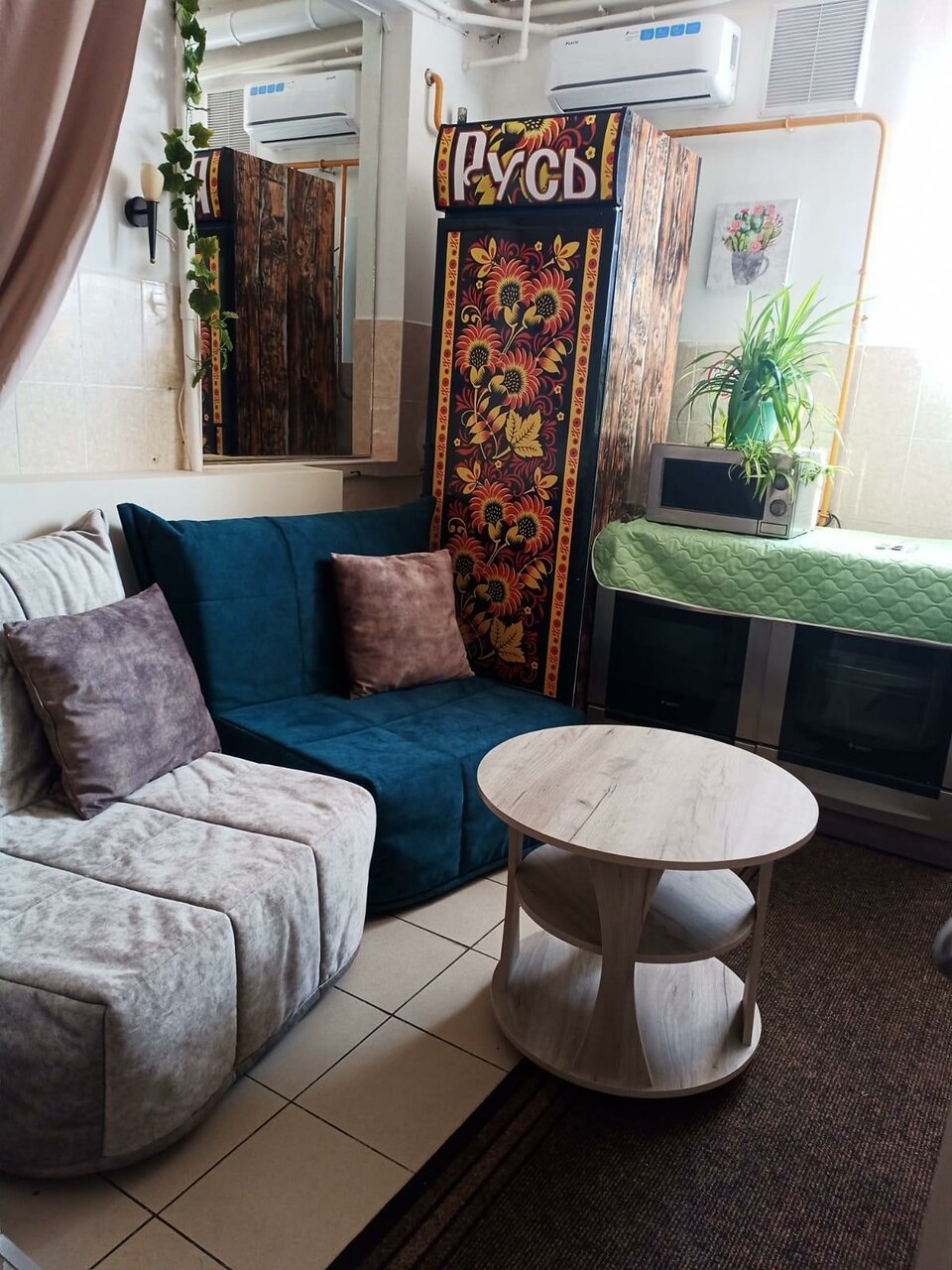 - Отель переделан из кафе (двери номеров выходят на ресепшн)