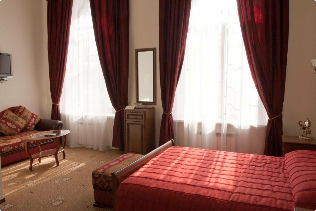 - Подходит для молодожёнов и романтического отдыха.; Наличие мини-парка с удобными беседками.; Расположение в исторической части города.; Удобное расположение (близко к достопримечательностям, магазинам, кафе).; Вкусные и изысканные завтраки.