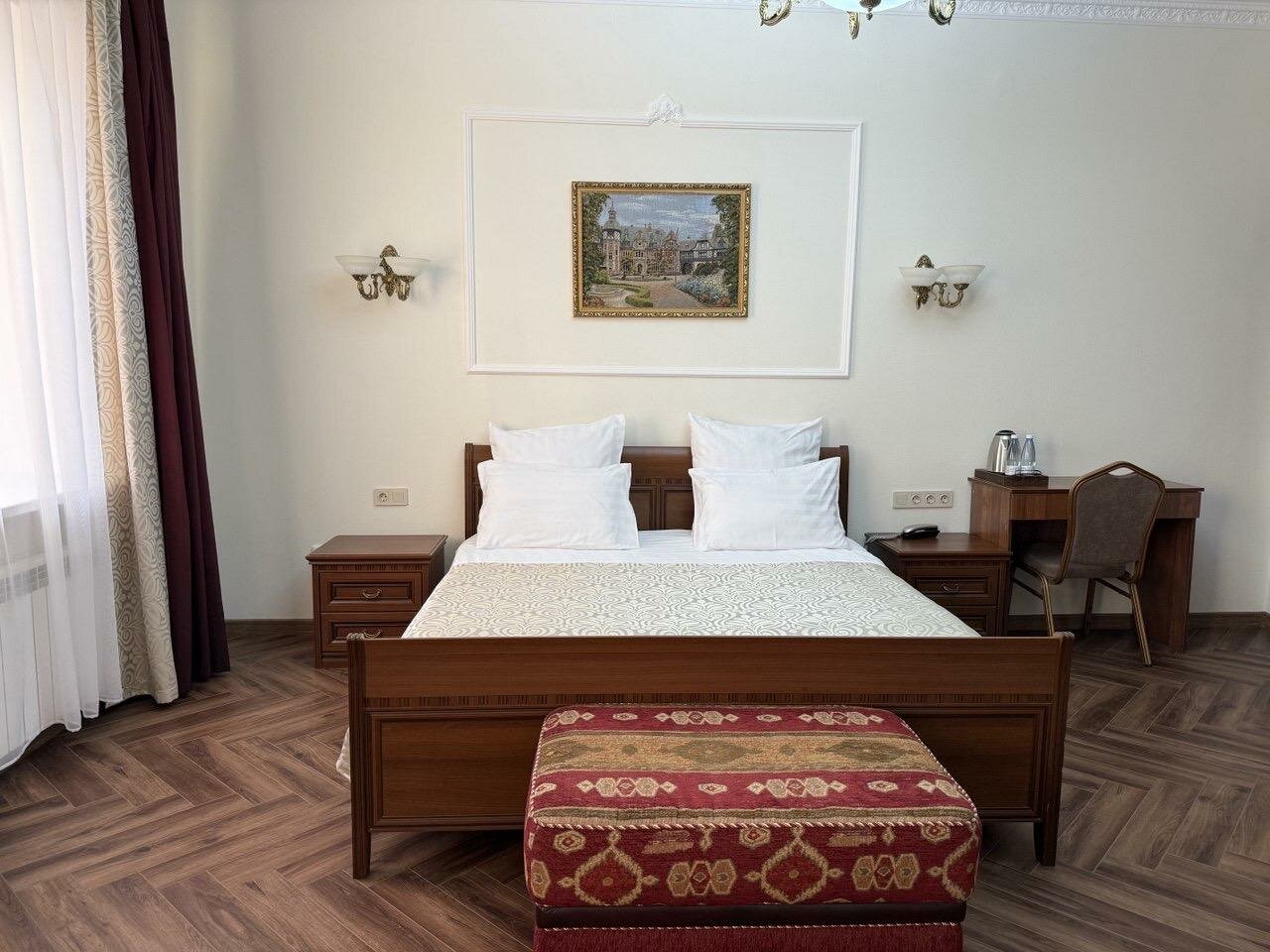 Отель для проживания молодоженов и прочих юбиляров совместной жизни. Именно тут нужно проводить медовый месяц. Красиво. Кровати огромные. Потолки красивые. Место уютное. Парковок мало. Номерной фонд небольшой, зато есть чистый внутренний дворик-сад.
