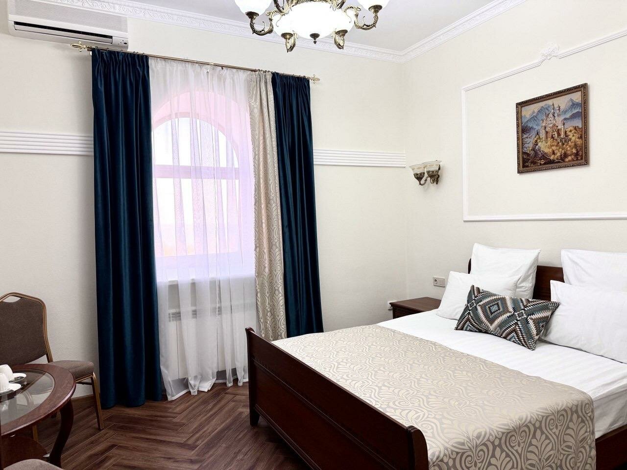 Прекрасный отель.локация идеальна. Пешком до центра 5-7 минут и в то же время отель на параллельной тихой улице. Отличный внутренний дворик с ратондой столик фонтанчик Розы вино Прекрасные завтраки 350 очень вкусно изысканная подача( девушка интеллигентная в белых перчатках) Очень вежливые девушки на ресепшн. Будем в Таганроге , только сюда. Главное чтобы были номера. Их всего 11