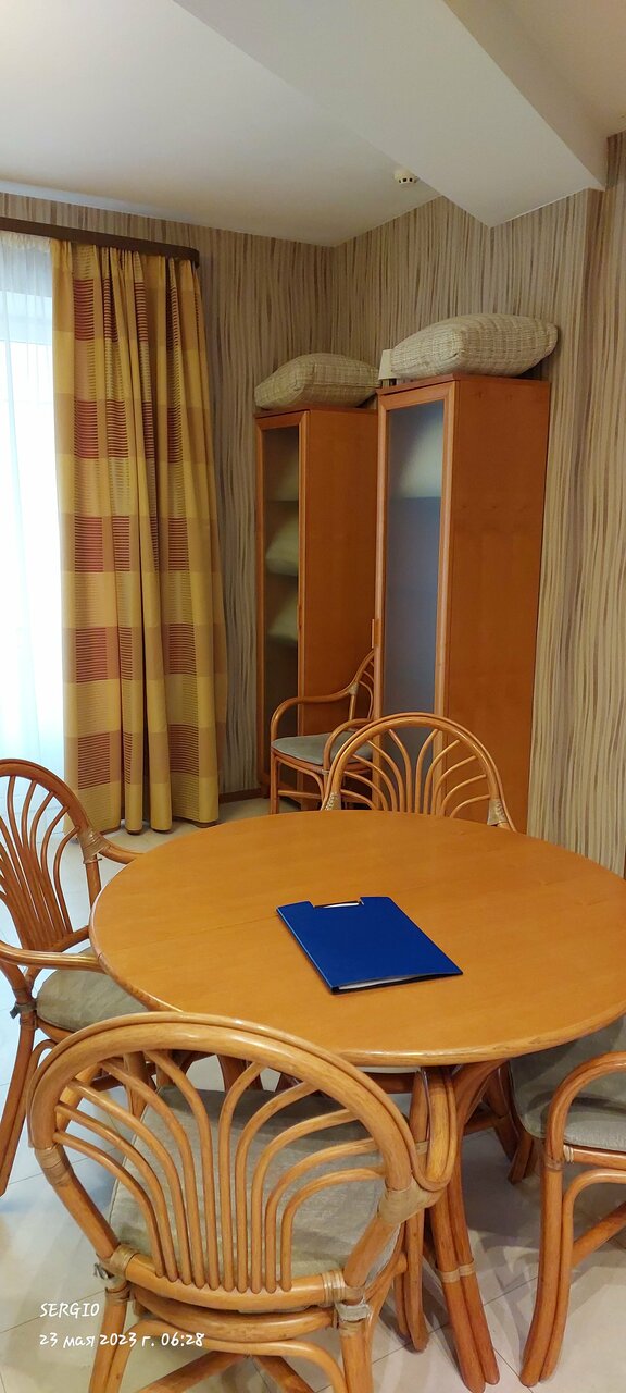 Апартаменты весьма достойны, есть мелочи, в виде потёртостей, медленно работает канализация,надо сливать воду, чтобы была горячая, балкон сверху неэстетичен, достаточно удобное расположение гостиницы, завтраки на выбор, территория чистая и ухоженная, в люксе только один кондиционер, в спальне его нет, окна не откидываются, только открываются. В остальном всё хорошо.