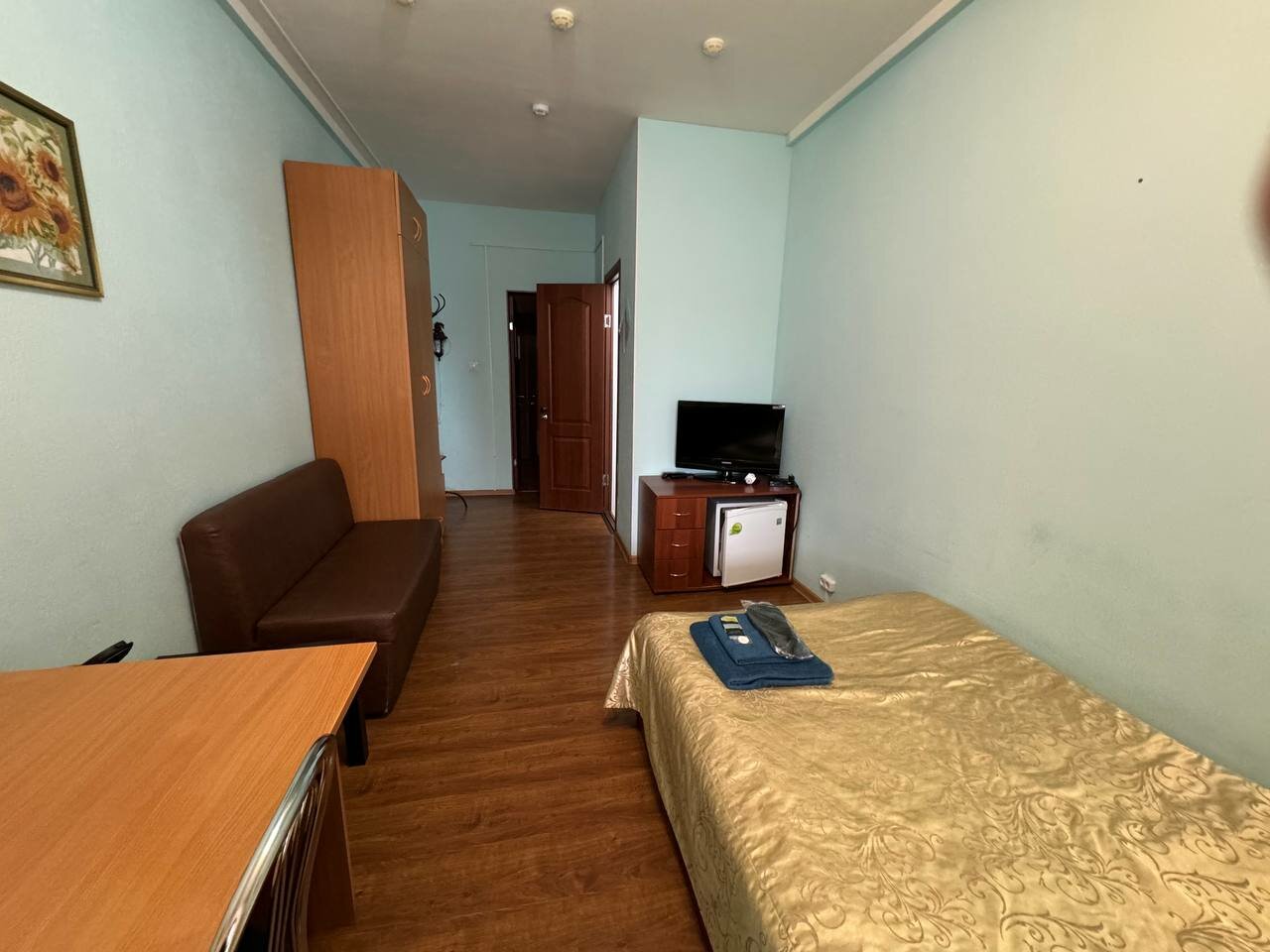 Плюсы: 1. Не так дорого как могло бы быть 2. Рядом есть пара кафе, чуть подальше столовая 3. Есть отчётные документы для бухгалтерии 4. В номере есть чайник и холодильник, а микроволновка в коридоре общая как бы 5. Телевизор и вай-фай тоже есть Минусы: 1. Номера требуют косметического ремонта, но об этом вполне честно предупреждают при бронировании