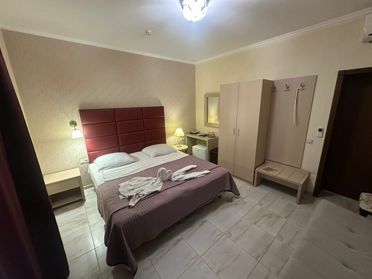 Стоимость номера за 1-2 человек. За ребенка доплата 300 руб., за взрослого доплата 500 руб. В номере есть кондиционер, санузел, двухспальная кровать и диван или одна двухспальная кровать. В услуги входят полотенца, уборка номера, смена посте...