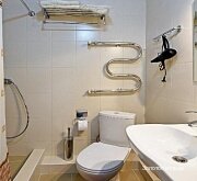 - В номерах есть всё необходимое (душ, туалет, ТВ, холодильник, фен, Wi-Fi).
