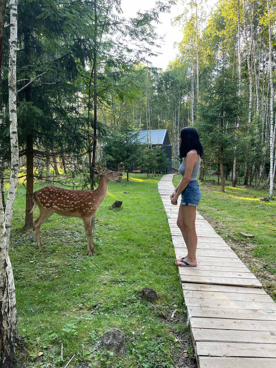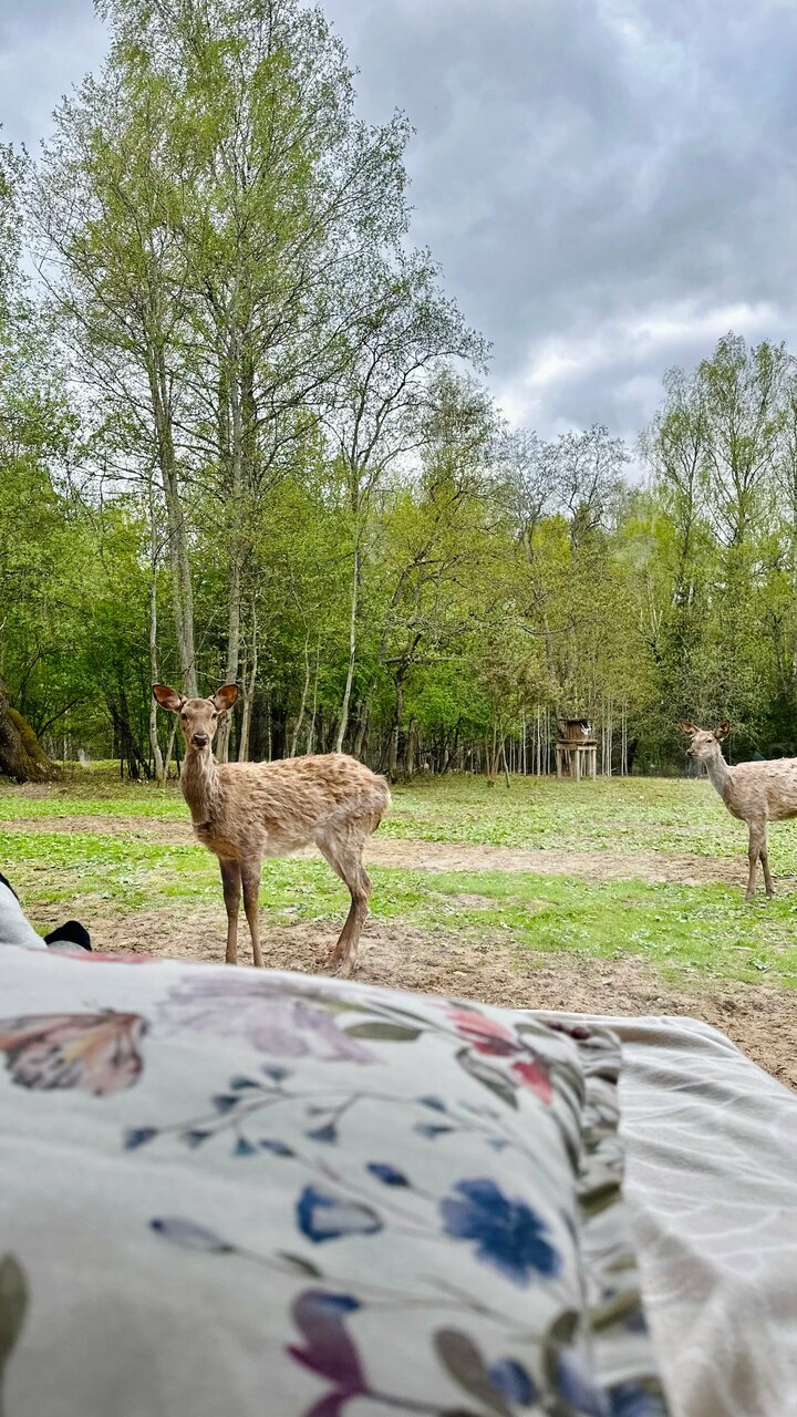 Прекрасное место, формат зоопарк-ферма. Свежий воздух вдали от городской суеты, комфортные номера и возможность взаимодействовать с животными — оленя, кролики, куры )