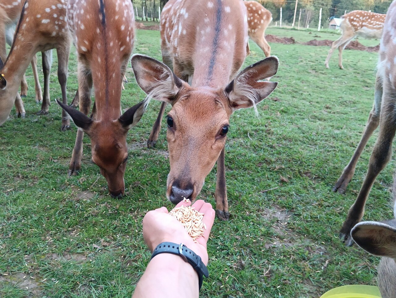Ездили на ферму вдвоем с мужем. Обитатели фермы оставили массу впечатлений! Самое интересное, что большинство зверей находятся в привычной для них среде обитания, на свободном выгуле. Есть возможность посмотреть на оленей вблизи, потрогать и покормить. Рекомендую Бемби ленд к посещению. Здесь нет толпы туристов, через головы которых нужно разглядывать животных. Вы сможете спокойно насладиться природой, познакомиться с оленями, кроликами, козочками, енотом и другими прелестными обитателями.