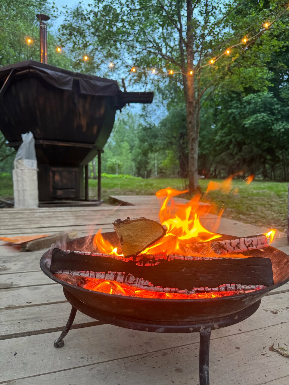 Парение в сибирском банном чане под открытым небом в лесу с пятнистыми оленями и кроликами. Уют и релакс. После насыщенного дня необходимо расслабиться и восстановить силы. Это можно сделать в банном чане, наслаждаясь теплом воды, ароматами трав!