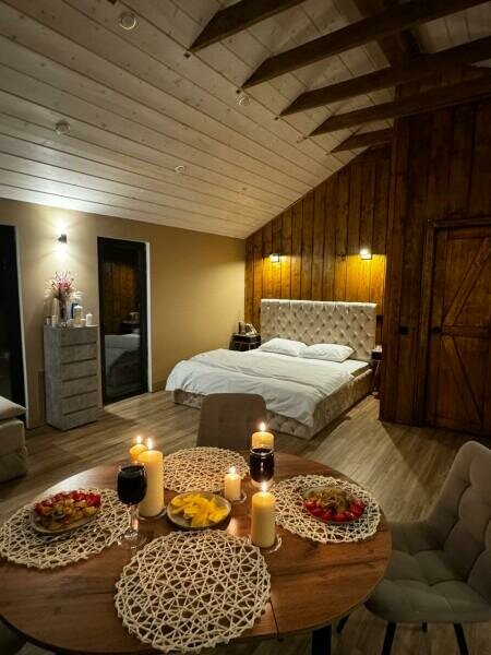Домик был идеальным местом для отдыха! Обстановка была уютной и комфортной, обслуживание на высшем уровне, персонал дружелюбный и внимательный. А также расположение оказалось очень удобным, позволяя легко добраться до магазинов продуктовых и аптек.Я провела замечательное время и с удовольствием вернусь сюда снова. В общем, отличное место, чтобы перезагрузится от города и набраться энергии и чистоты мыслей,рекомендую всем!