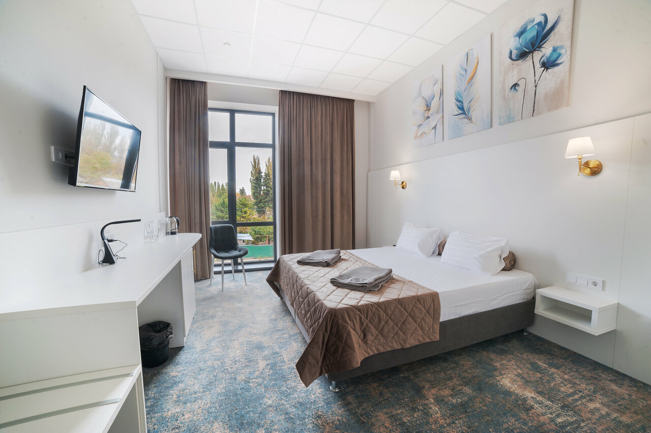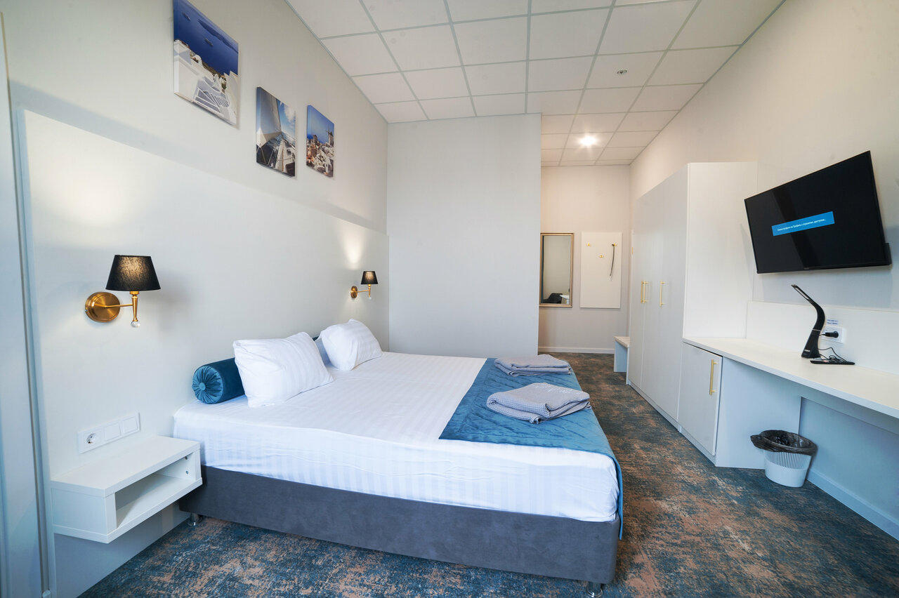 Новый отель с просторными номерами, невероятной чистотой и прекрасным персоналом. Единственное пожелание: в гостинице 4* таки должны быть чайники в номерах и вода в бутылке. Кулер в коридоре не вариант.