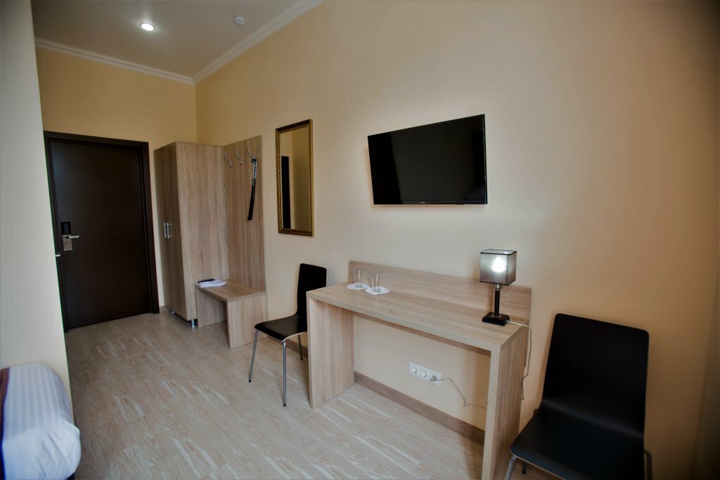 - Полная комплектация санузла.; Чистота в номерах.; Хорошее расположение (близко к трассе, но тихо).; Уютные и комфортные номера.; Парковка перед отелем.