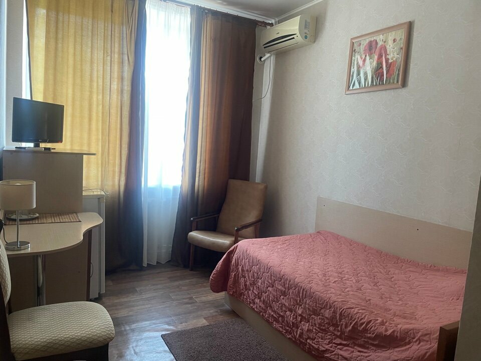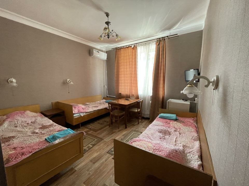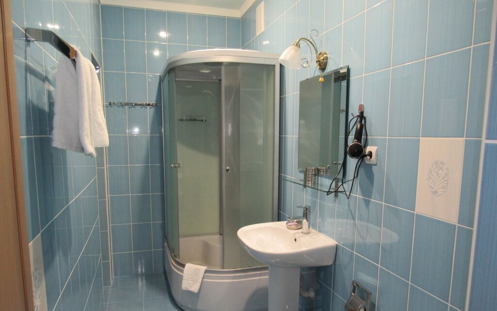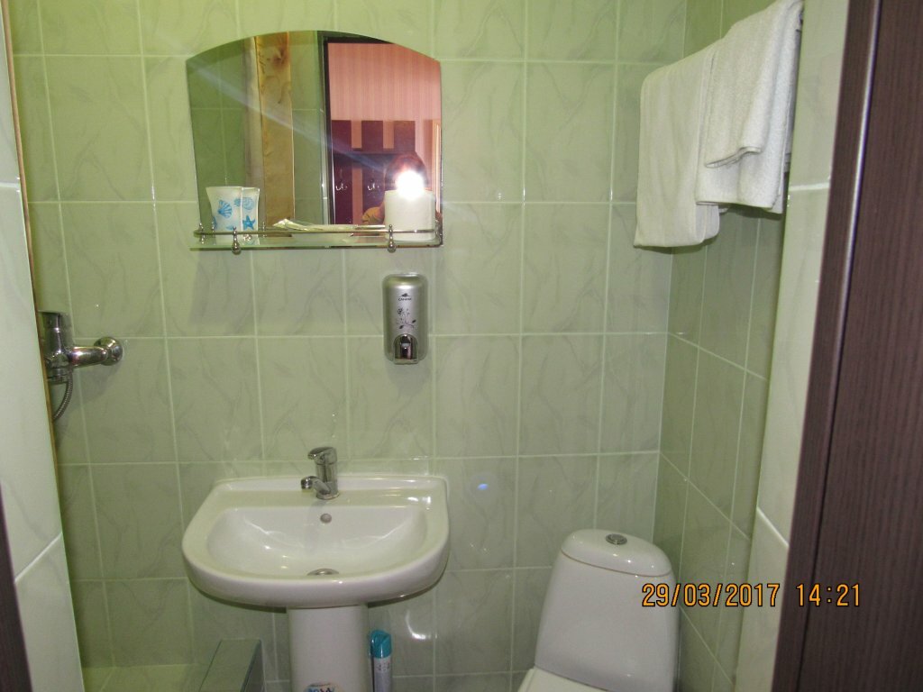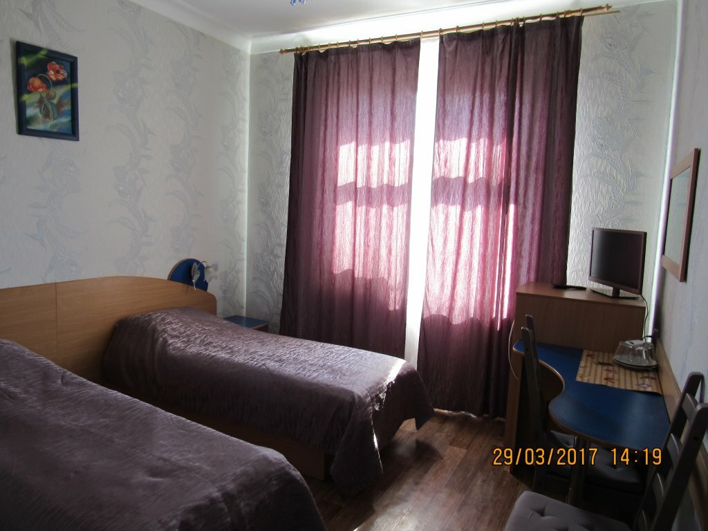 Гостиница находится в центре. За свою цену нормально. Номера чистые, белье тоже. В номере холодильник, телевизор, в некоторых номерах сплитуха. Выдают талоны на завтрак. Он довольно простой: яичница или каша или омлет, бутерброд, чай или кофе. Снял звезду за крайне неудобный санузел. На унитазе колени упираются в стену, держатель для душа на уровне груди, да еще и повешен вверх ногами, поэтому душ на нем льет на стену на которой висит.