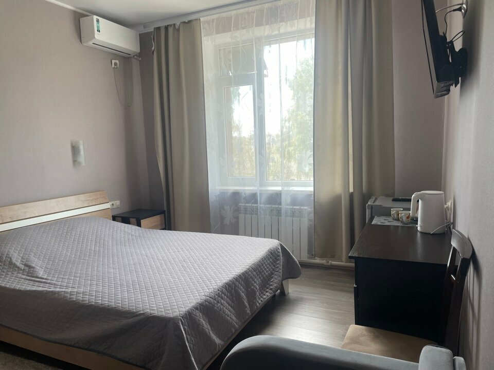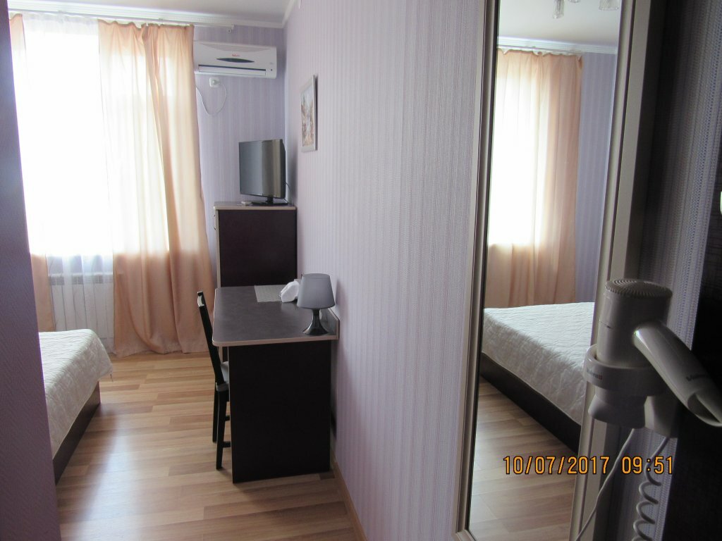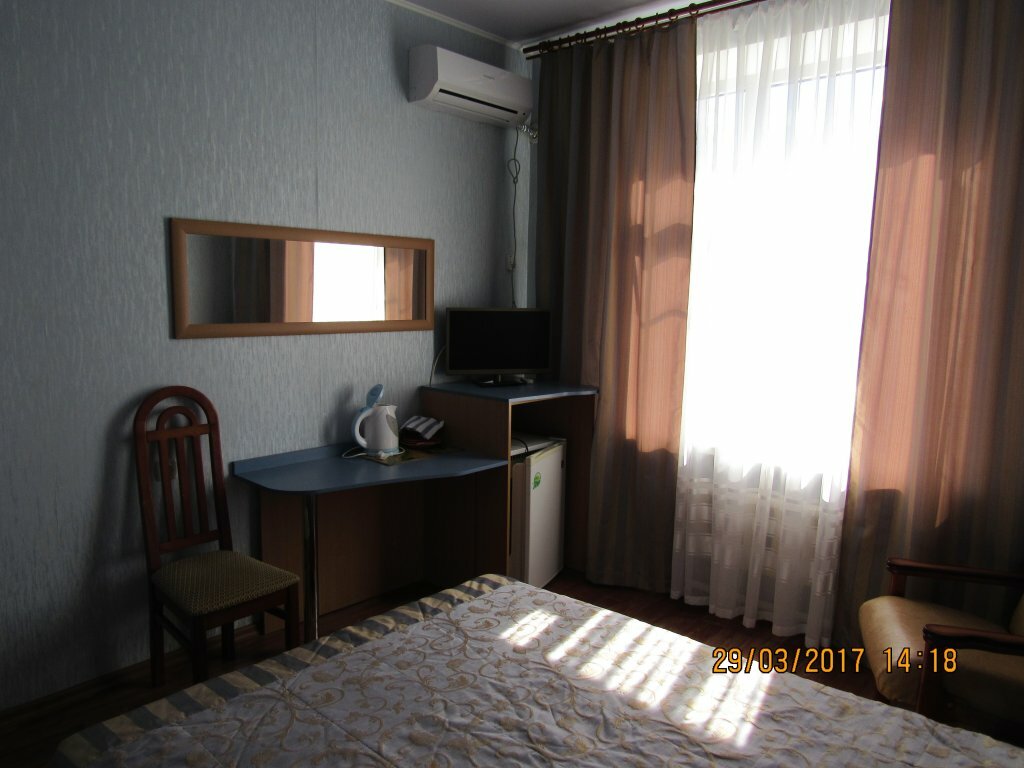 - Наличие холодильника, телевизора, кондиционера (в некоторых номерах).; Уютные номера.; Всё работает (техника, сантехника).; Новая сантехника (в люксе).; Чистые номера и бельё.