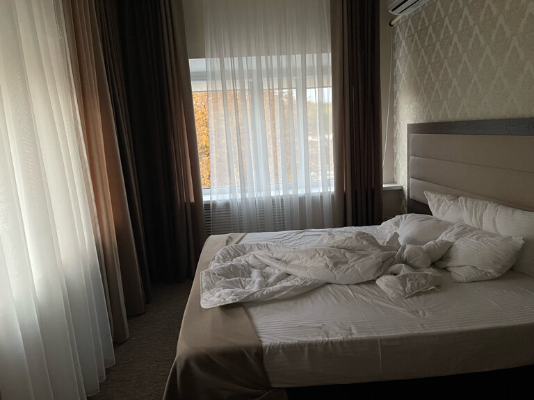 Бронировали люкс, номер хороший. Плюсы: чистота, постельное белоснежное, тишина. Минусы: очень холодно в номере.