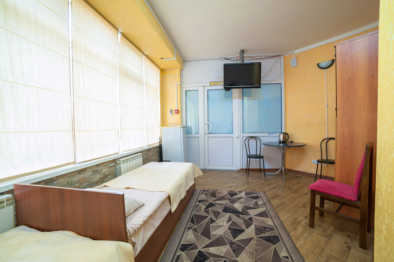 Удобства: холодильник, чай/кофе, халаты, тапочки, утюг, пляжные полотенца. Расположение: в 3–5 км от центра, рядом с парком. Цены: от 800 до 3000 ₽ за ночь. Завтрак по меню, заезд с 14:00, выезд до 12:00.
