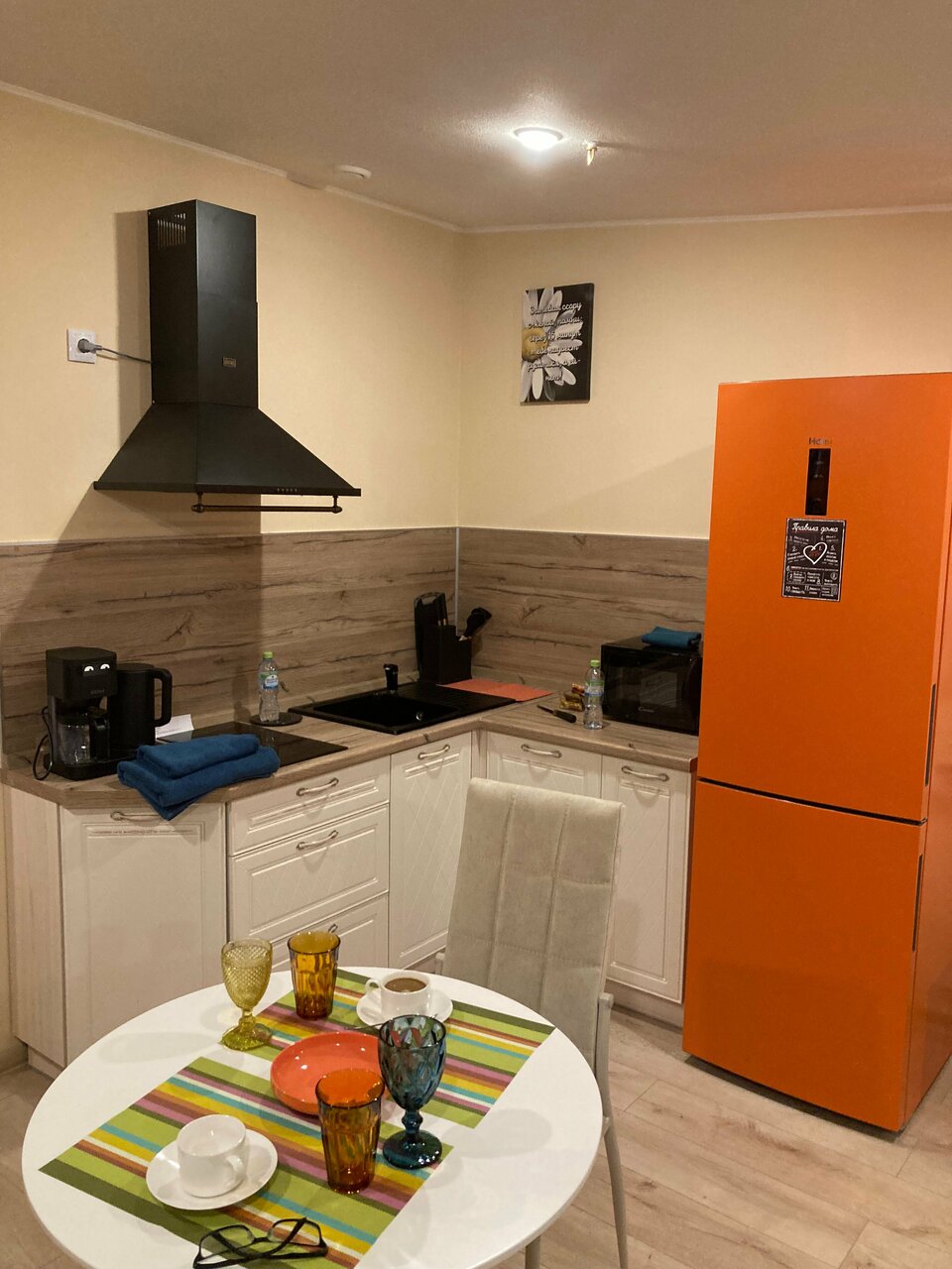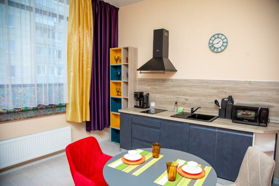 - Полноценная кухня с плитой, микроволновкой, посудомойкой, холодильником и кофеваркой.