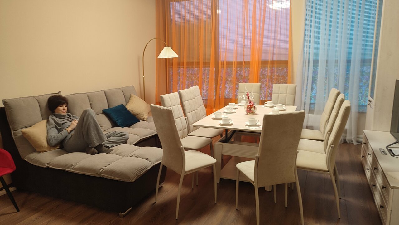 Замечательный новый апарт-отель, с просторными прекрасно меблированными номерами. Отличный очень приветливый директор Татьяна. Очень хорошее расположение отеля в торговом центре, где есть магазины, кафе и салон-красоты с бассейном и банями. Словами не рассказать, как нам с семьёй там понравилось, посмотрите видео)