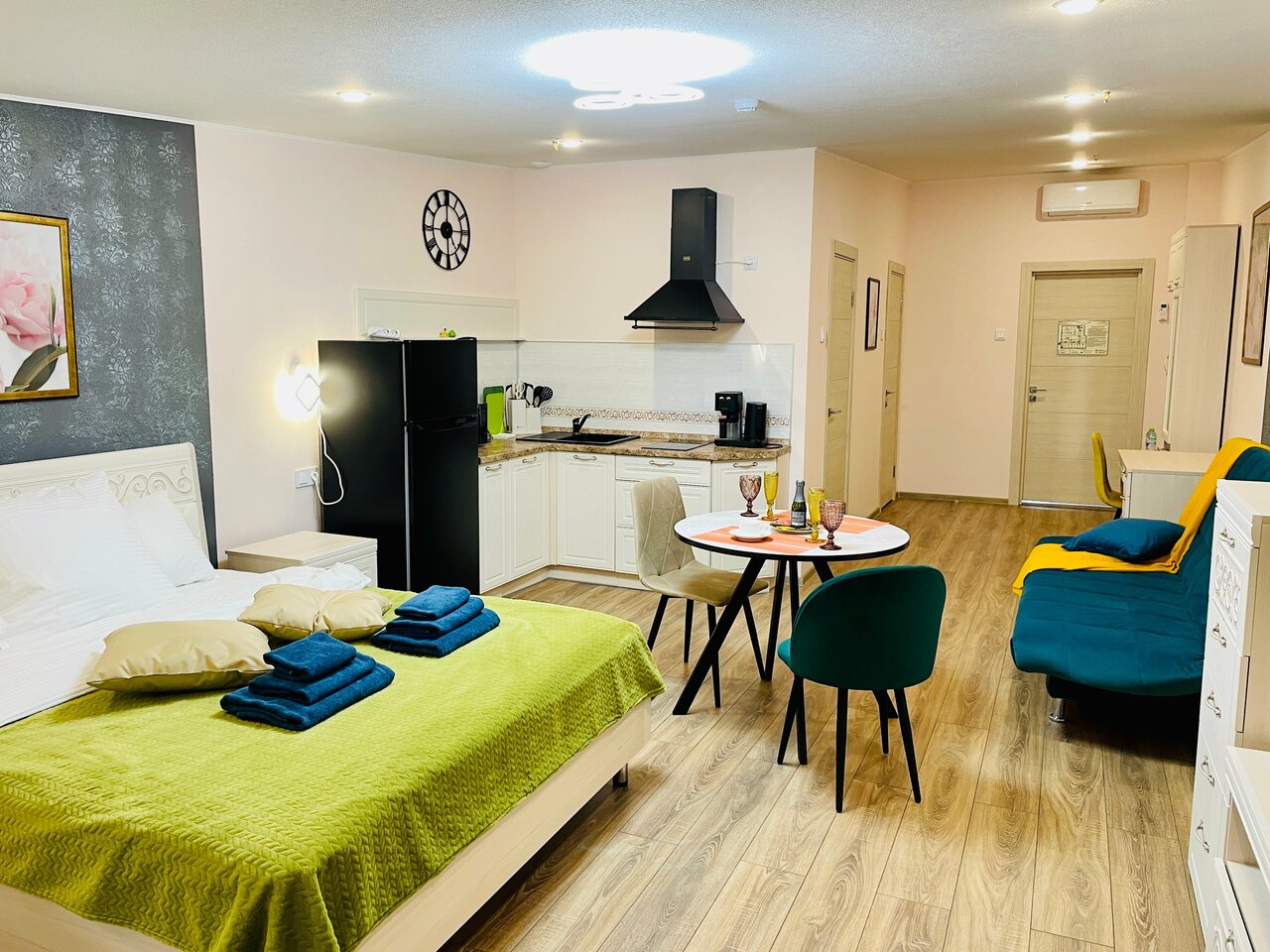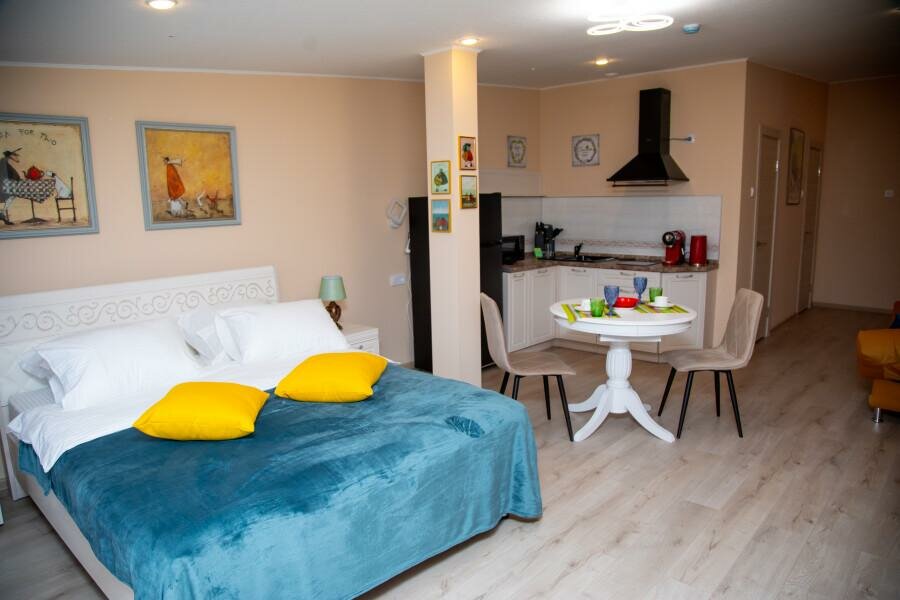 Прекрасный апарт-отель! Шикарные номера,всё продумано до мелочей. Своя кухня на которой есть всё необходимое и для готовой еды и для её приготовления, в туалете и шампунь, и гель для душа, и зубная щетка, радует глаз) Так же порадовали фрукты и бутылочка шампанского при звезде. А про сон на ортопедическом матрасе даже говорить не нужно, это просто-вау! Сам отель безумно красивый, картины, цветочки, статуэтки я как будто в музее побывала) В общем и целом всё сделано для людей, обязательно остановлюсь у вас снова!
