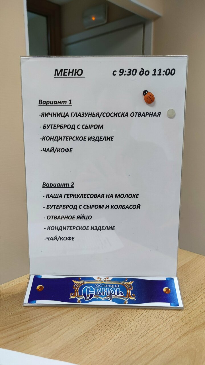 Гостиница очень понравилась. Люди очень душевные, что для нас важно . Будете в Тихвине посетите гостиницу Свирь, не пожалеете.