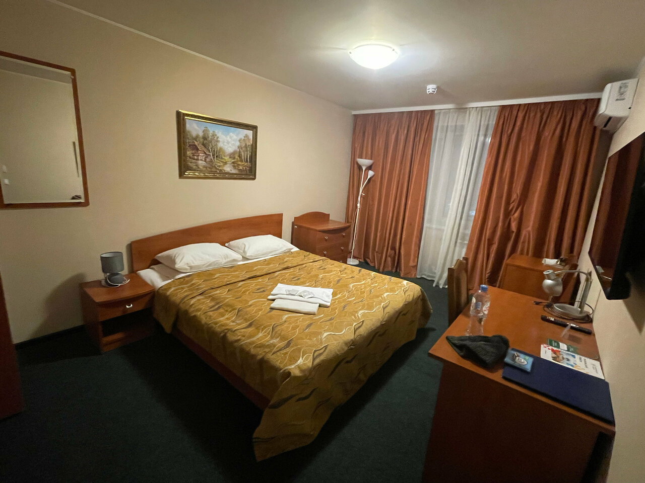 Хороший стандартный номер. Чисто. Душевая кабина, хорошая сантехника, постельное принадлежности и матрас в хорошем состоянии. В номере ТВ, чайникв, холодильника нет
