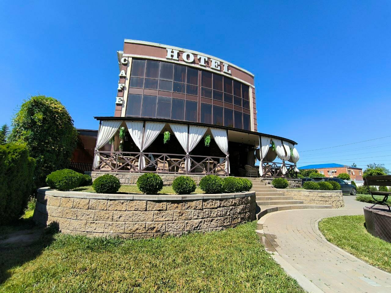 Шикарный отель для маленького южного города. Останавливались по дороге в Крым и обратно. Номера супер. Отдохнули с комфортом. На первом этаже есть ресторан, цены демократичные, утром нас ждал завтрак, который входил в стоимость. В следующем году обязательно остановимся в этом же отеле.