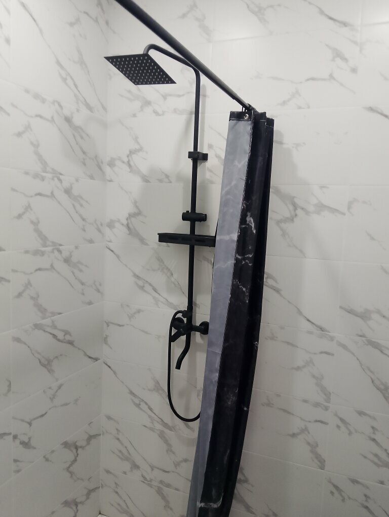 Все чистое, новое. Удобное расположение, не нужно заезжать в населенный пункт. Заселение дистанционное, что тоже очень удобно. Душ, туалет чистые.