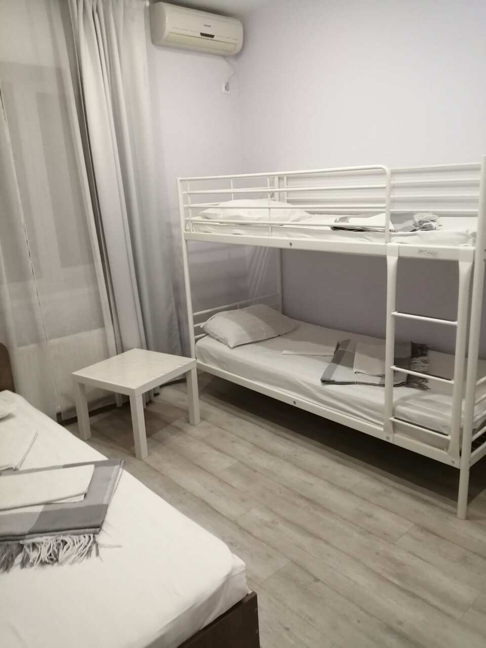 Гостиница неплохая.номер 3-х местный ,как потом выяснилось эконом.В номере чисто,свежий ремонт, телевизор,журнальный столик, мини холодильник,кондиционер,в прихожей открытый мини шкаф для одежды.Удивило полное отсутствие стульев,т.к.была одна односпальная кровать и одна двухъярусная,т.е просто сесть было некуда,как в поезде.:) и отсутствие прикроватный тумбочек,хотя бы одной.В ванной комнате унитаз,раковина и душевая кабина,все компактно и симпатично.
