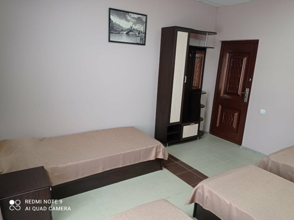 Трёхместный номер эконом площадью 12 кв.м. и видом во двор.В номере имеется: одна двуспальная и одна односпальная кровати, шкаф, телевизор, холодильник, стол.Удобства общие на этаже.Оснащение номера и мебель:Площадь 12 кв.м.Кондиционирование