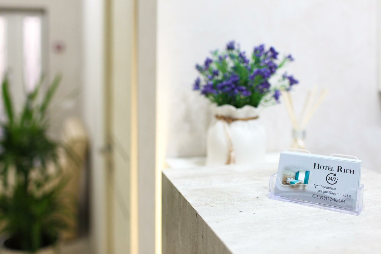 Гостиница Rich расположена в центре Тимашевска по адресу ул. Пролетарская, 155Б. Это современный мини-отель, работающий круглосуточно, с комфортными номерами, звукоизоляцией, кондиционерами и бесплатным Wi-Fi.