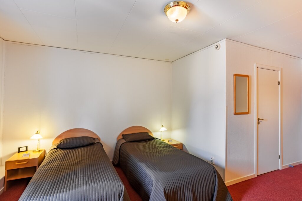 В номере Эконом двухместный есть всё необходимое для комфортного проживания: 2 кровати ортопедическим матрасом, кабельное тв, wi-fi, мини-холодильник, рабочий стол, сплит-система, набор полотенец и косметических принадлежностей.