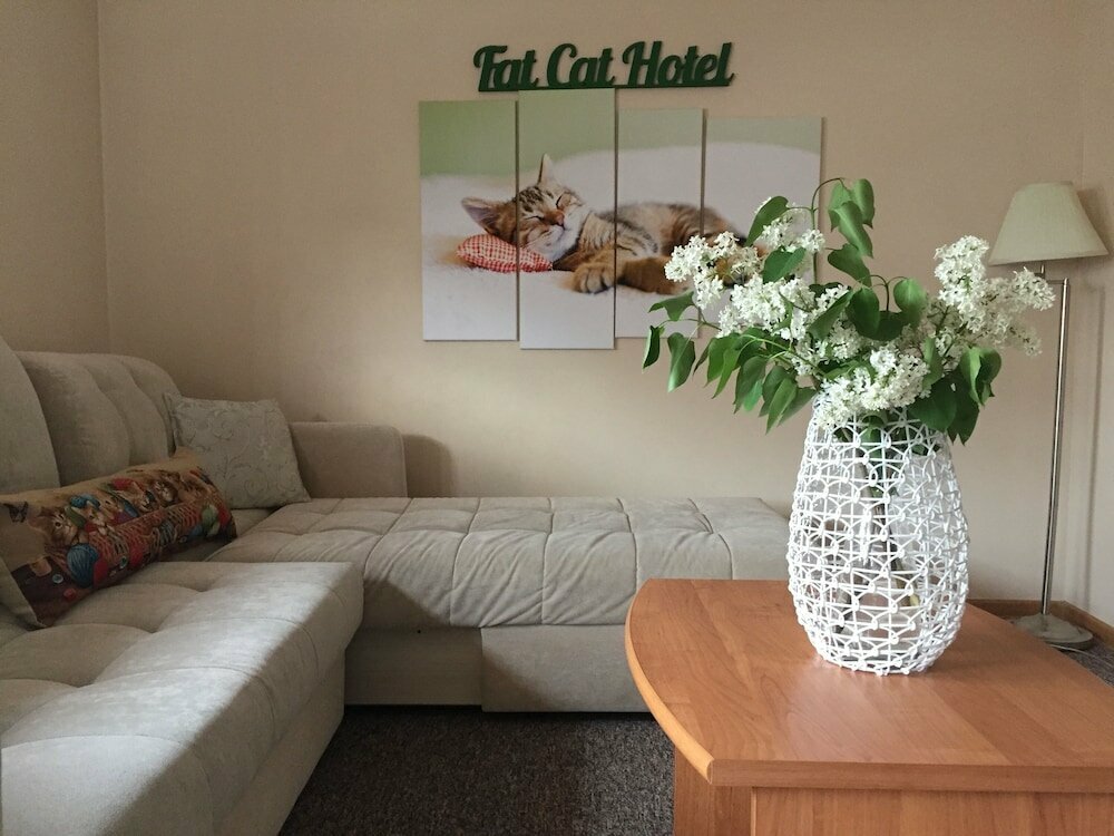 Очень уютный небольшой отель с душевными котами) Персонал очень доброжелательный, ненавязчивый. В номерах всегда чисто. Можно поесть в столовой, можно заказать еду из кафе — визитки на стойке ресепшена. Если характеризовать отель одним словом, то пожалуй душевно
