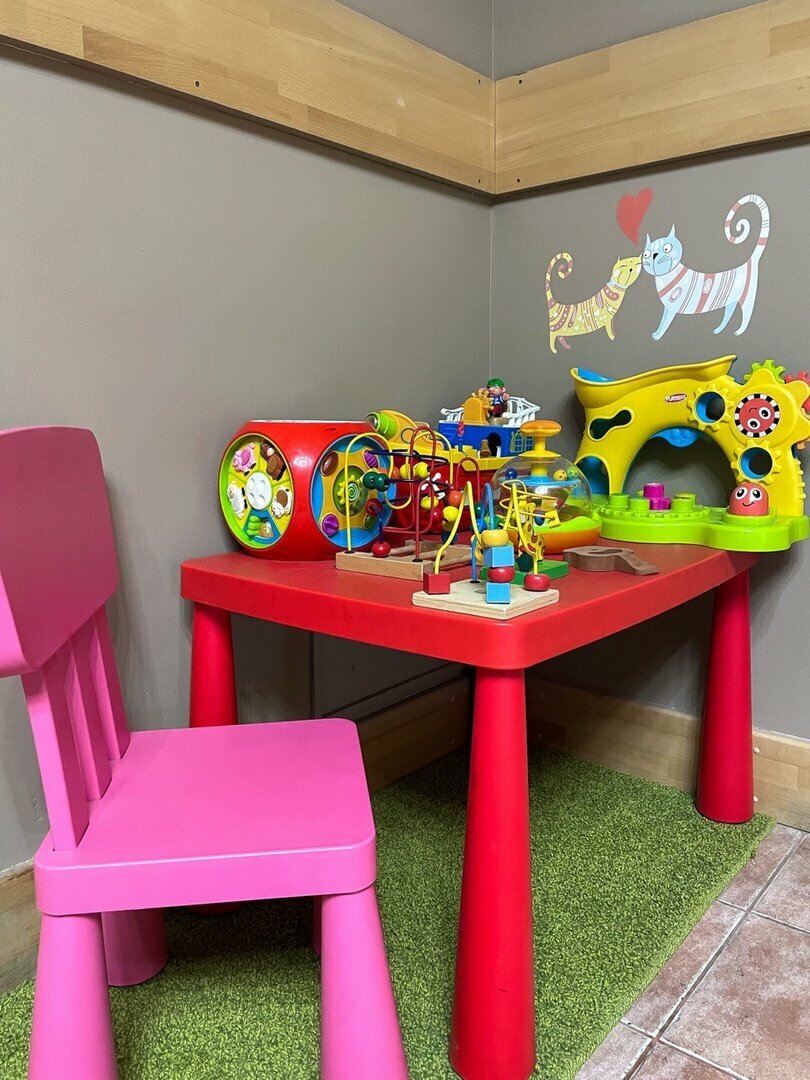 Удобства: — Номера с кондиционером, Wi-Fi, телевизором, холодильником, чайником и санузлом. — Питание: кафе, ресторан, бар, детское меню, завтрак (опционально). — Для бизнеса: компьютер в бизнес-центре, банкетный зал. — Для отдыха: летняя веранда, сад, детская площадка, игровая комната, настольный теннис, прокат велосипедов. — Услуги: бесплатная парковка, трансфер (вкл. аэропорт), химчистка, салон красоты, хранение лыж/вещей. — Разрешено проживание с животными.
