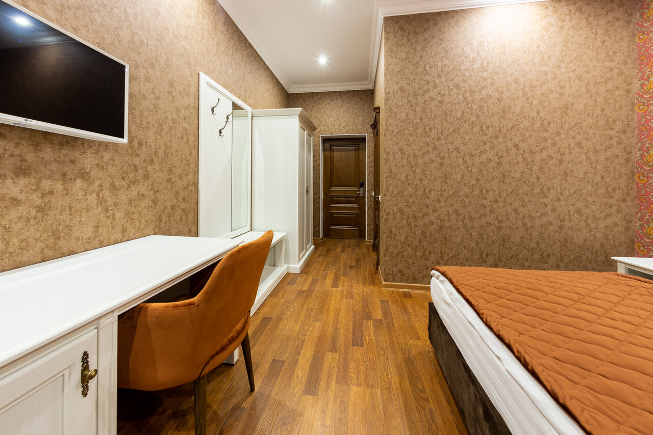Отель бронировали за 2 недели. Администратора нет нас встретила уборщица и сказала ,что номер не готов нужно подождать 10 мин в итоге ждали 30 мин она суетливо бегала его убирала . Бронировали люкс на 4 но номер подготовили только на двоих при просьбе дать дополнительно постельное белье было сказано ,что нету . Сломанная кровать, под диваном фантики ,носки грязные и УЖАСНЫЙ запах в номере . Отель не стоит своих денег . Владельцу все равно , у него все замечательно . Так же отель бронировали наши друзья но они приехали позже и им было сказано ,что свободных номеров нет ! Номер отдали другим . Так ,что будьте внимательны! Снаружи красивая обёртка но внутри плохо .